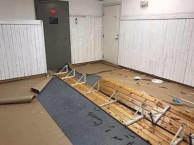 Någon ny ishall blev det inte men OIK har ändå jobbat på att det ska bli lite uppiffat i hallen. Bland annat så har Kim, Mats och Göran målat om i omklädningsrum 1 och 2. Det blev riktigt snyggt.