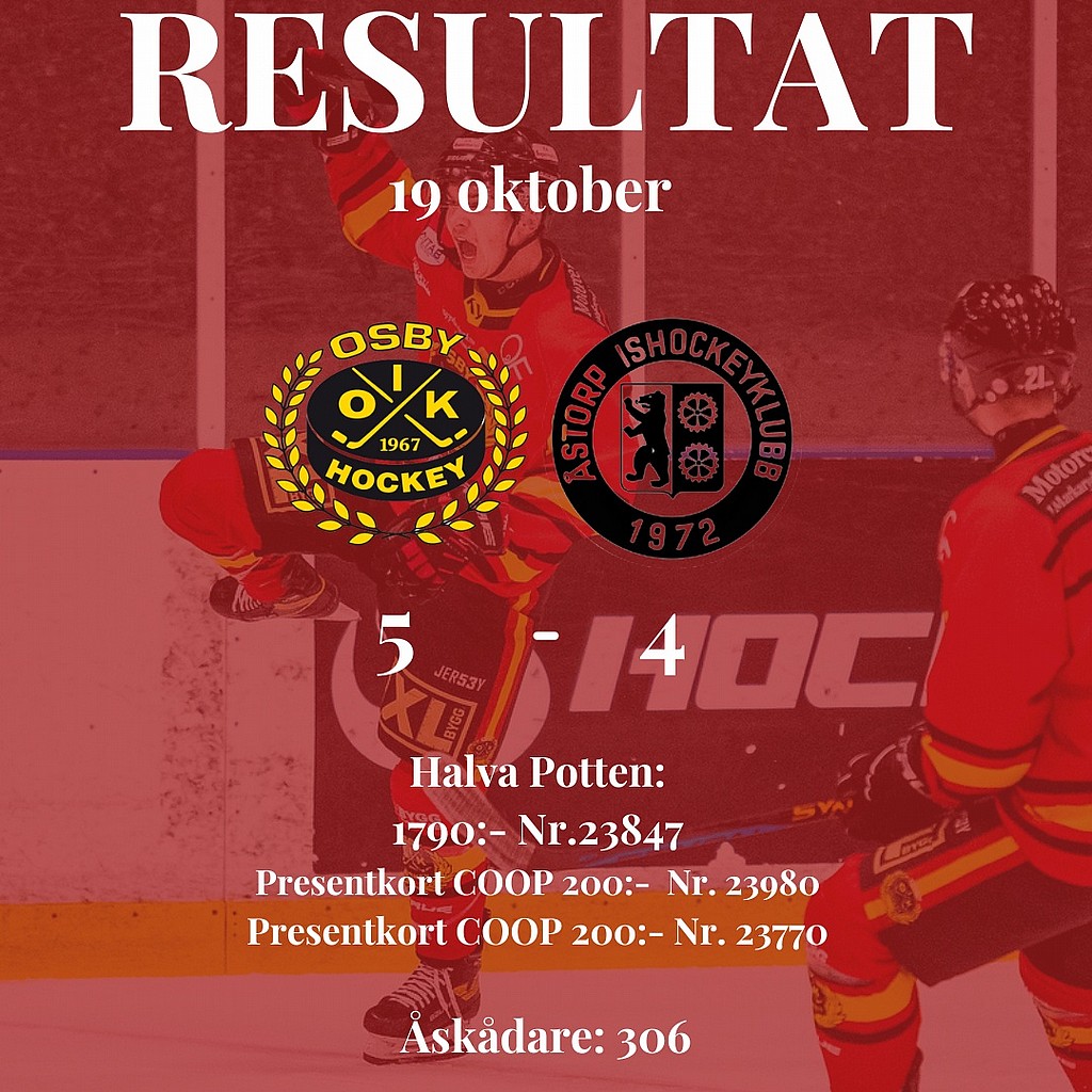 Gårdagens matchresultat blev till slut till Osbys favör (OT). Läs gärna Hemmamatchs matchreferat och titta på fina bilder från dramat.