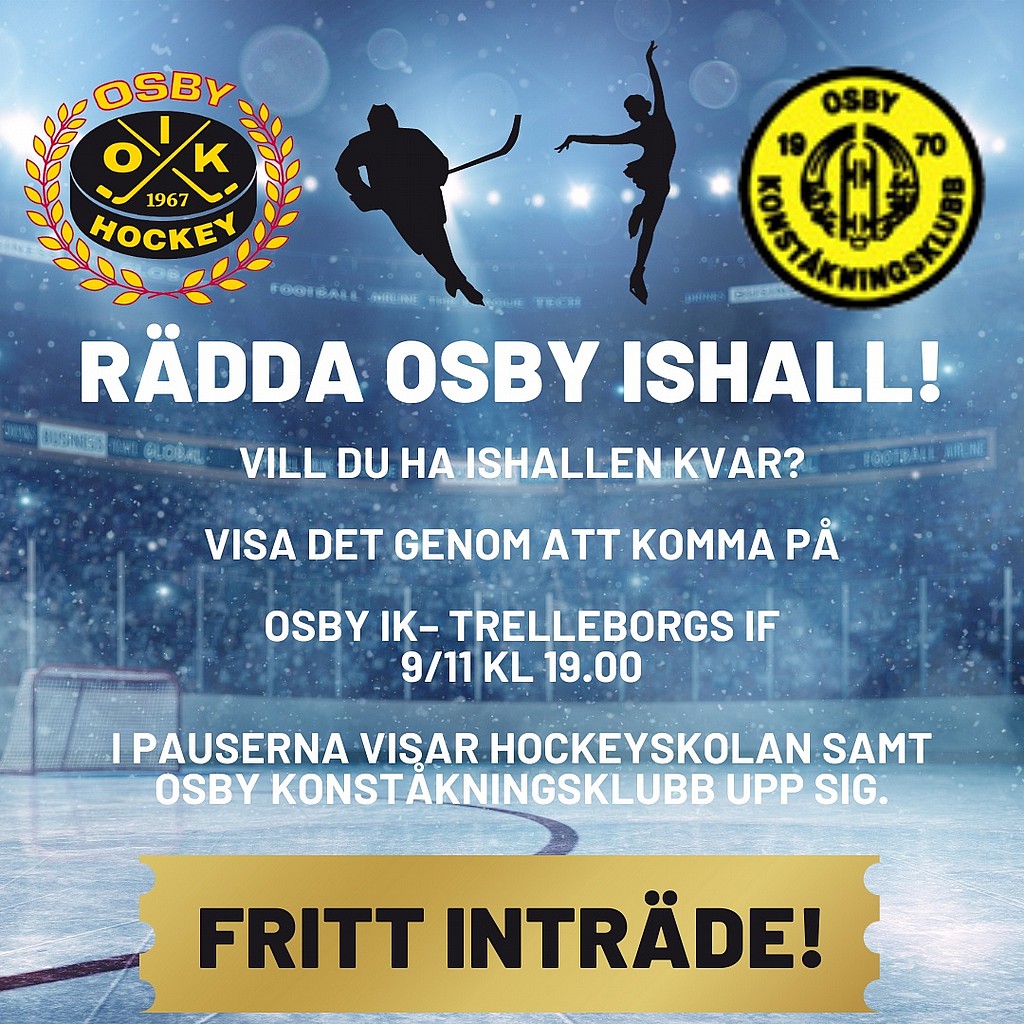 Nu gäller det att visa var vi står - alla Osbybor - och alla andra som tycker det är viktigt att våra ungdomar får fortsätta utöva sin fritidssysselsättning i Osby Ishall.