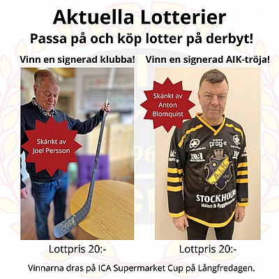 Under kvällen säljer vi lotter till två alldeles UNIKA LOTTERIER där all behållning går till ungdomssektionen: