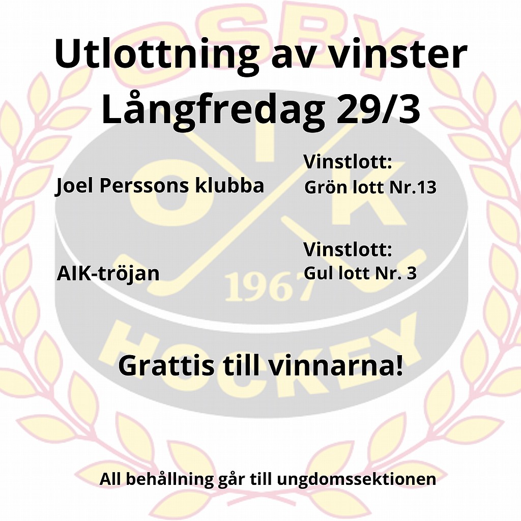 På Långfredagen drogs vinstlotterna i vårt lotteri med de skänkta vinsterna från Joel Persson och Anton Blomqvist.