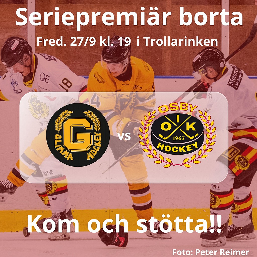 Fredag 27 september startar äntligen seriespelet i HockeyTrean Södra F. Vårt seniorlag inleder med derby mot Glimma HK i Trollarinken.