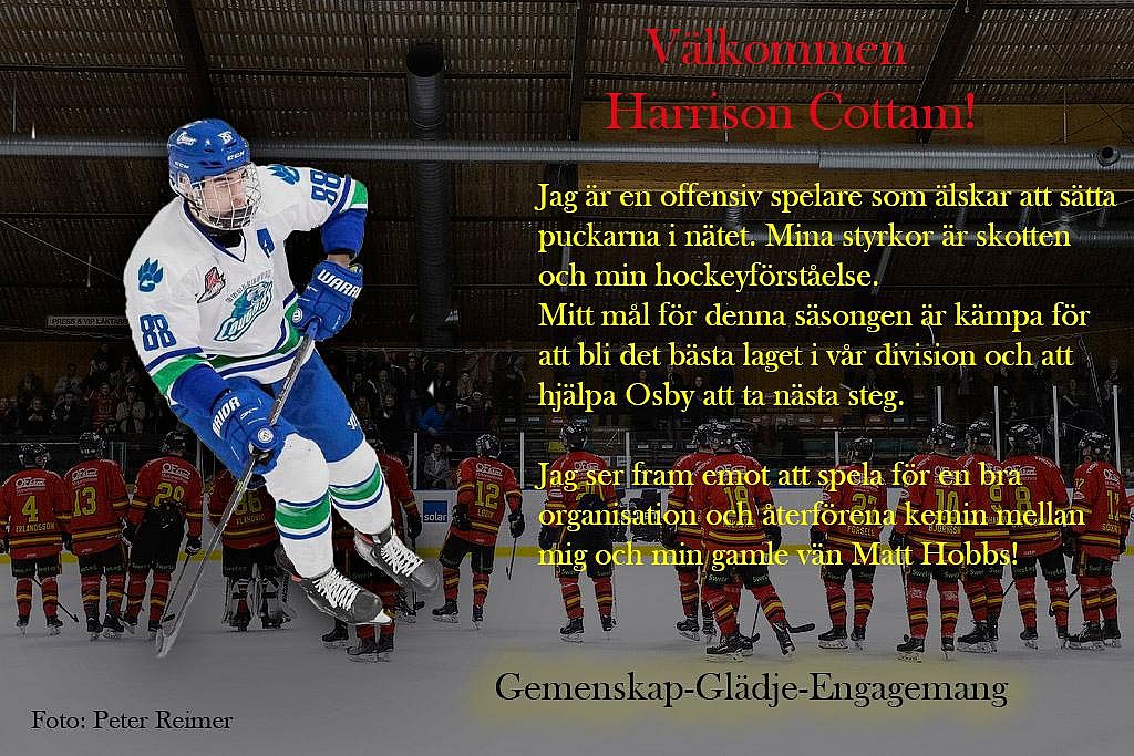 För 2 säsonger sedan spelade dom tillsammans i juniorligan OJHL och laget Burlington Cougars. De mäktade med hela 78 poäng tillsammans. Dessa fördelades med 48 poäng för Cottam och 30 poäng för Hobbs. Ett fruktat par som alltid var ett offensivt hot då de var på isen. Likt Hobbs är Cottams personlighet och karaktär som klippt och skuret för Osby IK. Hans vilja, engagemang och fantastiska skott kommer med all säkerhet glädja många OIK:are under säsongen.