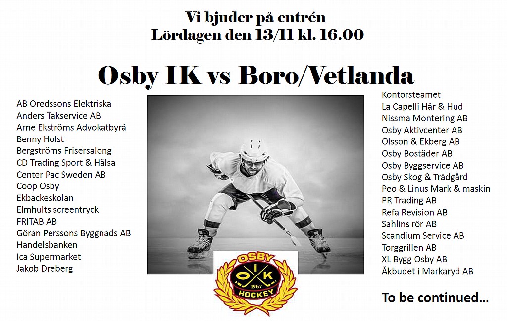 Vi ser fram emot en härlig hockeyfest i Osby ishall!
