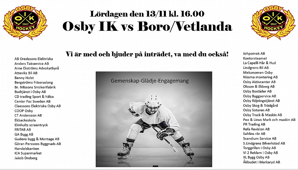 Vi ser fram emot en härlig hockeyfest i Osby ishall!