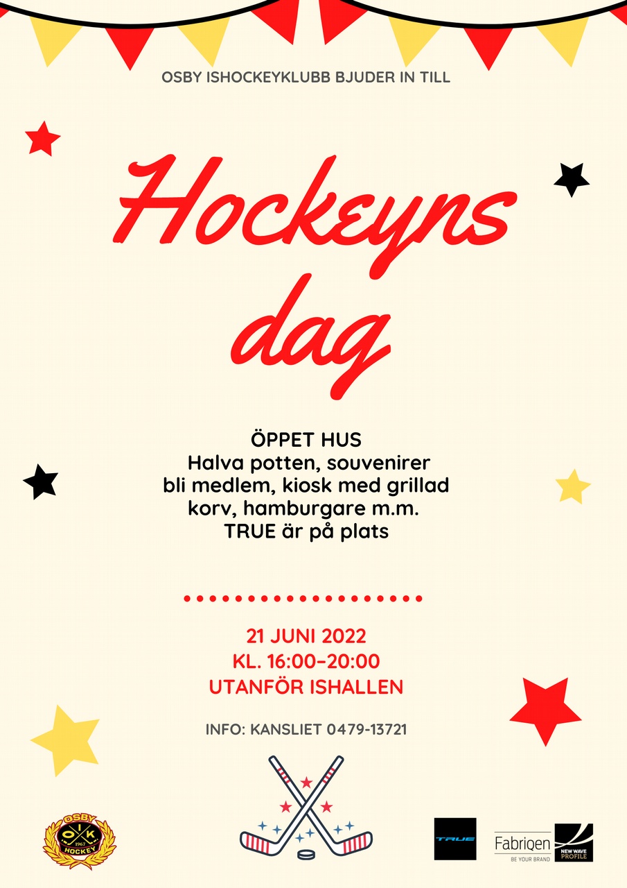 Kom och besök Osby IK på Hockeyns dag. Tävla i halva potten, köp en snygg OIK-keps och andra souvenirer, passa på att bli medlem och ta en hamburgare.