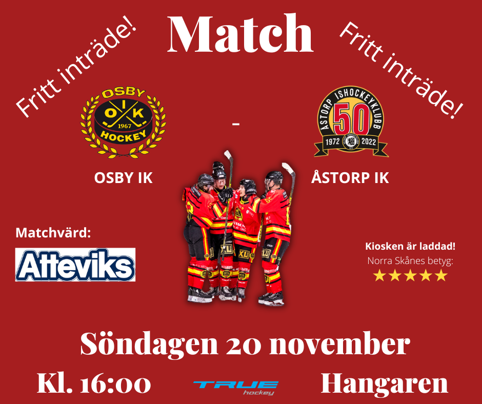 Nästa hemmamatch är mot Åstorp på söndag. Det är fritt inträde för alla besökare, vilket vi kan tacka våra partners för.