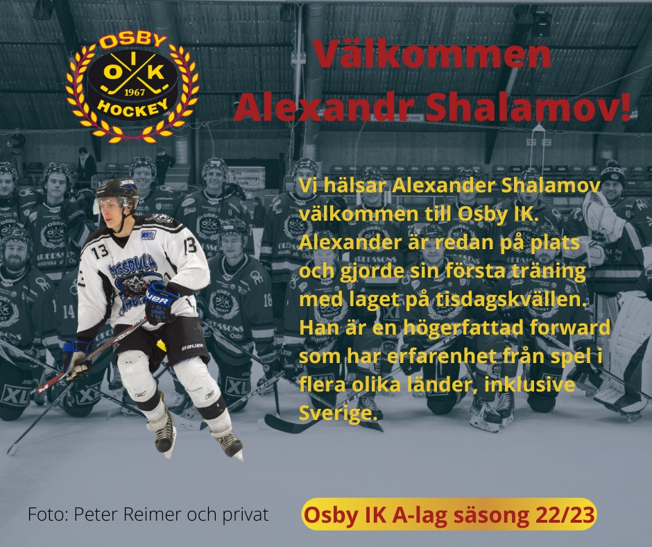 Vi kan glädjande nog presentera en ny spelare i seniorlaget, Alexander Shalamov! Han har bland annat spelat i div. 2 i Arboga tidigare.