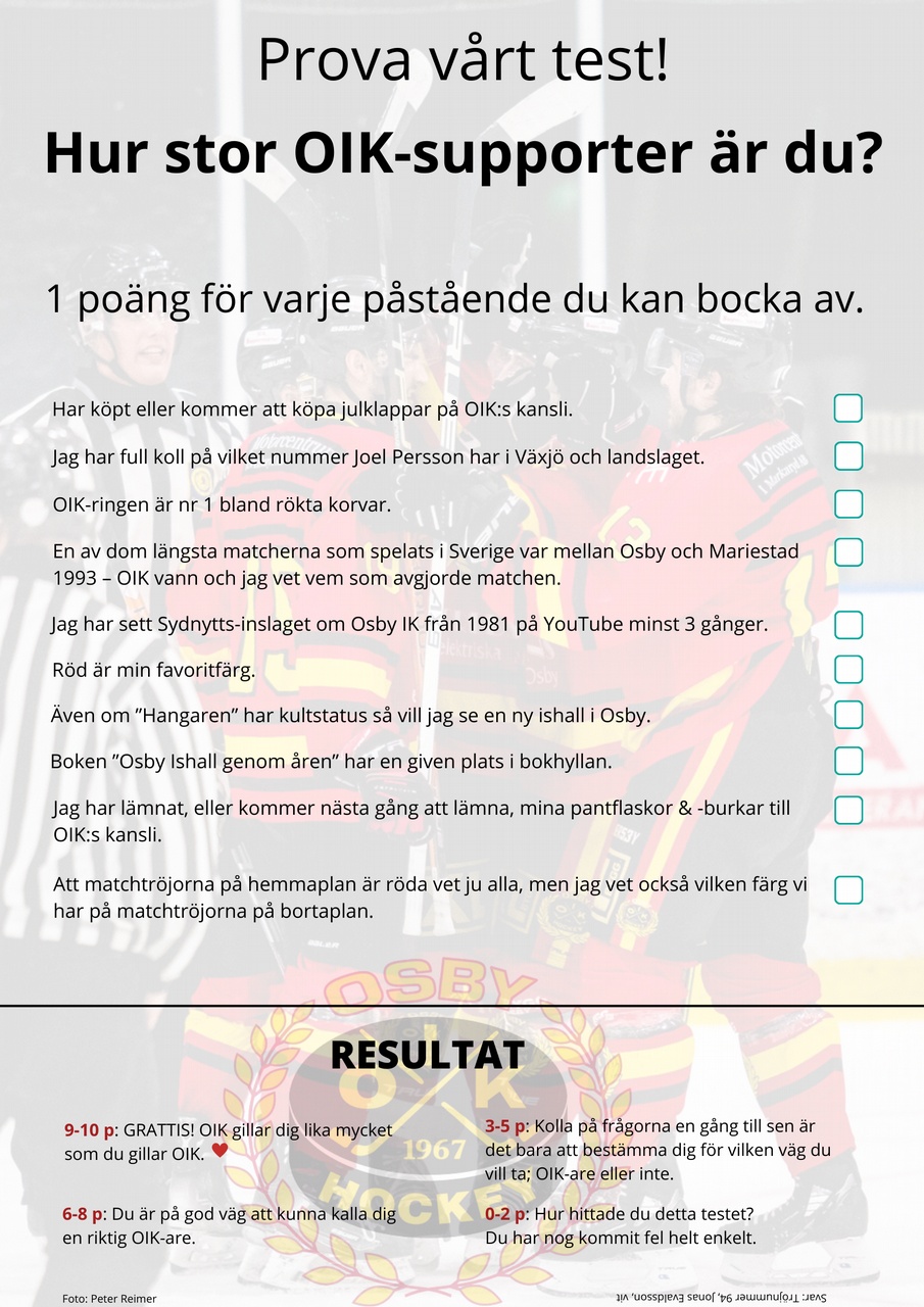Prova gärna vårt test själv och varför inte utmana kompisarna som alltid påstår att de "vet" allt om OIK. :)